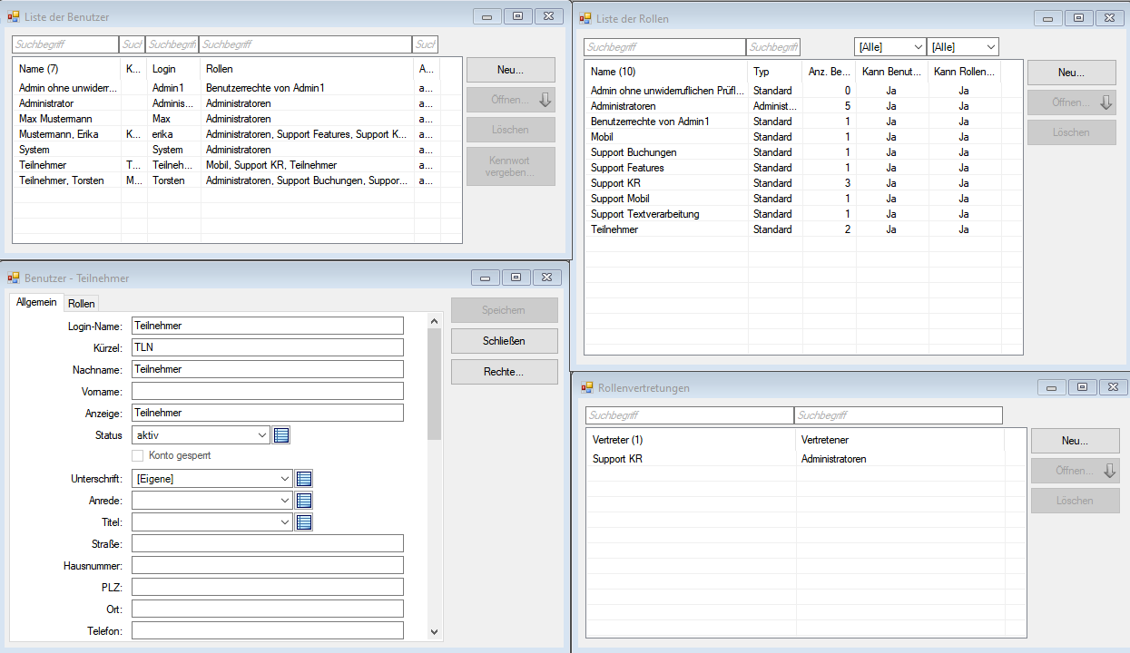 Die neue rollenbasierte Benutzerverwaltung ist eine konsequente Weiterentwicklung des aktuellen Moduls. Dabei wurde Wert auf eine flexible und moderne Rechtestruktur gesetzt. Folgende Änderungen und Verbesserungen wurden implementiert: