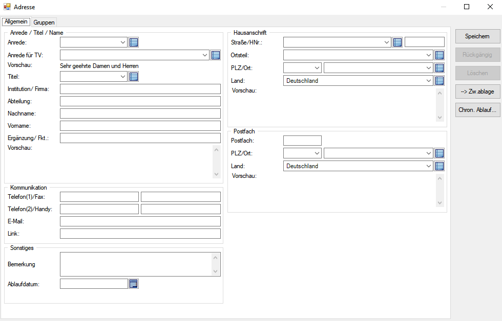 Alle Daten, Dokumente, Adressen und Vorgangsdaten werden in einer Datenbank gespeichert und lassen sich strukturiert ausgeben.